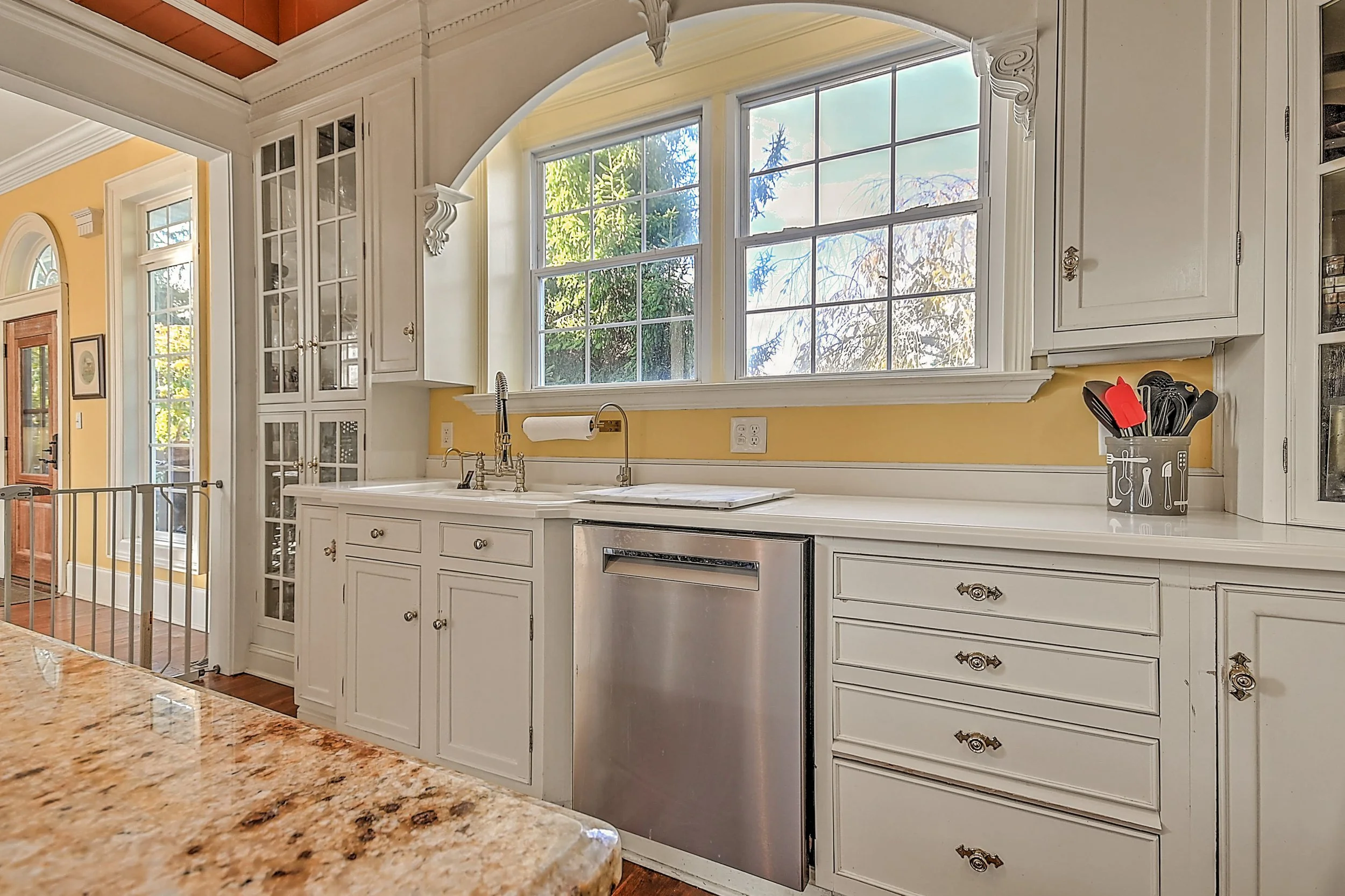 Throughout the elegant home, large windows and tall ceilings fill each room with natural light. Seven fireplaces—four gas—add warmth and character to every level. Four spacious bedrooms, expansive porches and decks, and tranquil outdoor spaces create a peaceful retreat that's still just minutes from shops, dining, and a vibrant downtown.