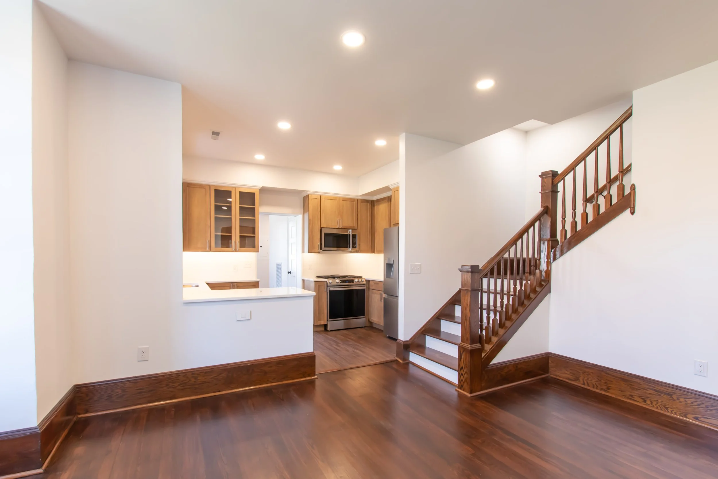 The property has been thoughtfully renovated from top to bottom, with all-new electrical and plumbing systems, dual zone gas furnace and air conditioning, and a fire wall between the two units. The adjoining unit is still under construction. Each unit enjoys its own driveway, private yard, and additional storage space both in the attic above and beneath the home.