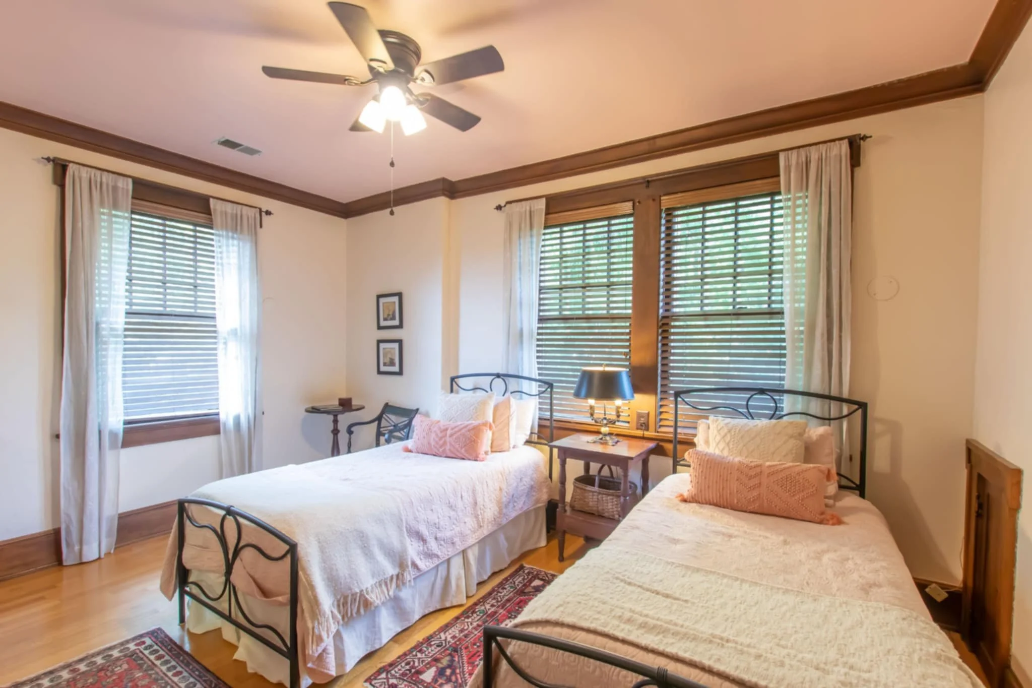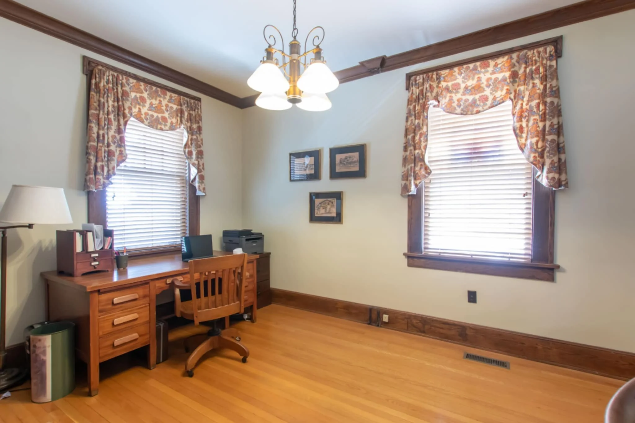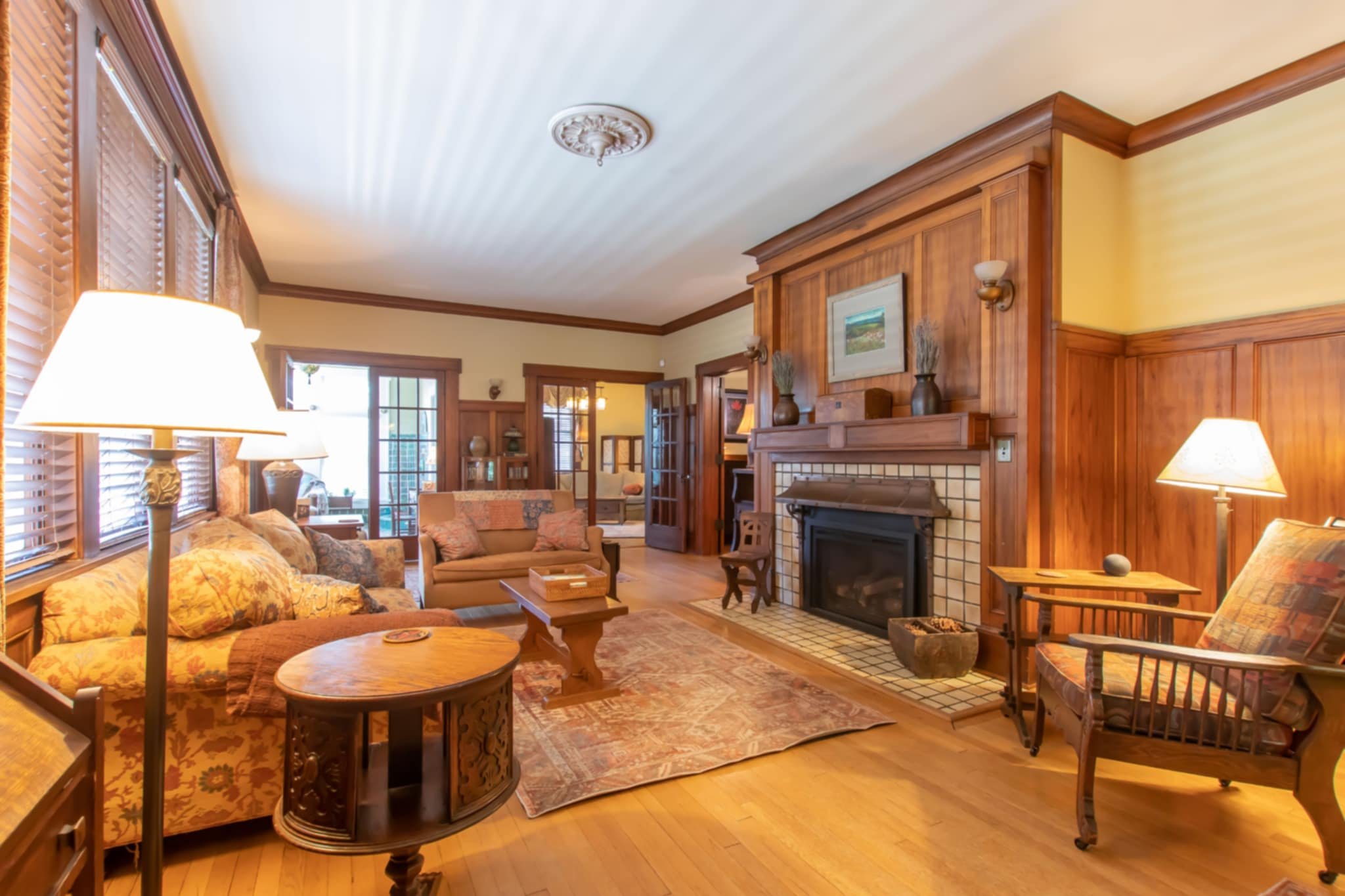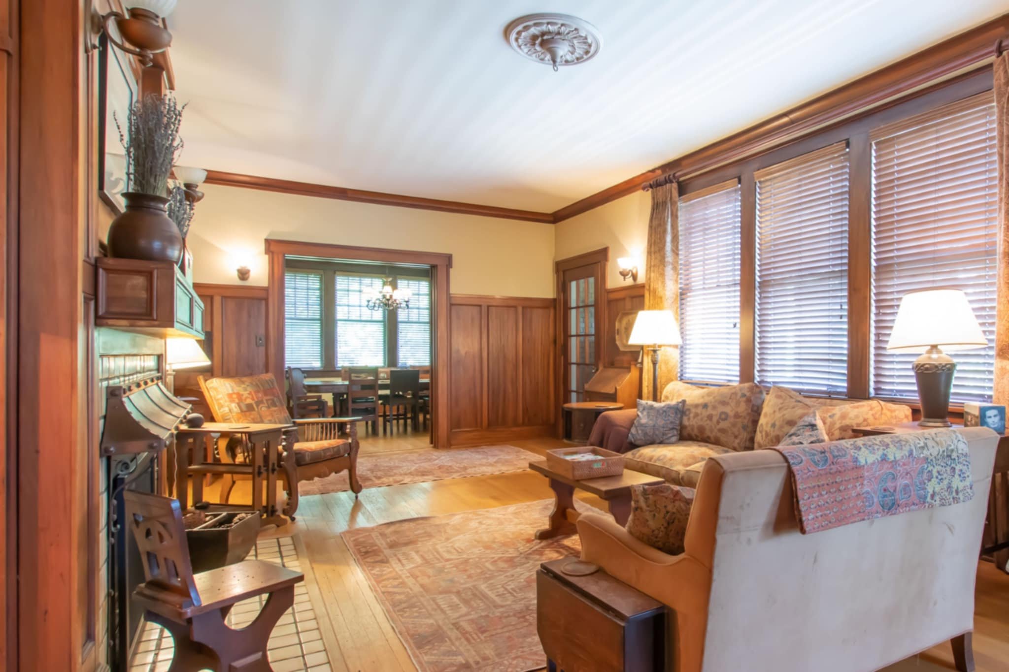 Timeless 1923 Custom Masterpiece: Historic Elegance Meets Modern Comfort in Southwest Virginia's Mountains. Nestled in a serene, tree-lined historic neighborhood with breathtaking views of Holston Mountain, this exquisite 1923 home offers 4,200 square feet of warm, inviting living space on a sprawling 1.4-acre partially wooded lot. Custom-built by a lumber company owner for his family, this one-of-a-kind residence blends priceless craftsmanship with thoughtful modern upgrades. Step inside to discover the hallmark features of true Craftsman design: extensive unpainted woodwork, built-in cabinetry, and multiple fireplaces adorned with fine wood mantels and intricate tile accents. The simple yet functional layout flows seamlessly from one comfortable room to the next, including a spacious living room, formal dining room, updated kitchen with breakfast room, private office, sun-drenched sunroom boasting exquisite tilework, den, and versatile studio space. With four generously sized bedrooms and three full bathrooms, plus an enormous attic and basement for endless storage or expansion potential, this home provides ample room for family, guests, or creative pursuits. Outside, the front porch opens to a professionally landscaped patio.The detached two-car garage adds convenience, while the wooded acreage behind the house ensures privacy and a connection to nature. Modern enhancements include a state-of-the-art geothermal heating and cooling system with gas backup for energy efficiency (2025 upgrades), a restored Ludowici tile roof for enduring style and durability, new dishwasher, refrigerator, cooktop, and countertops. Location is everything in this charming Bristol neighborhood, just minutes from downtown. Enjoy a slower pace of life, four distinct seasons, a sense of cultural heritage and 30 minute access to the Appalachian Trail, and the South Fork of Holston River, one of the nation's premier fly-fishing destinations.